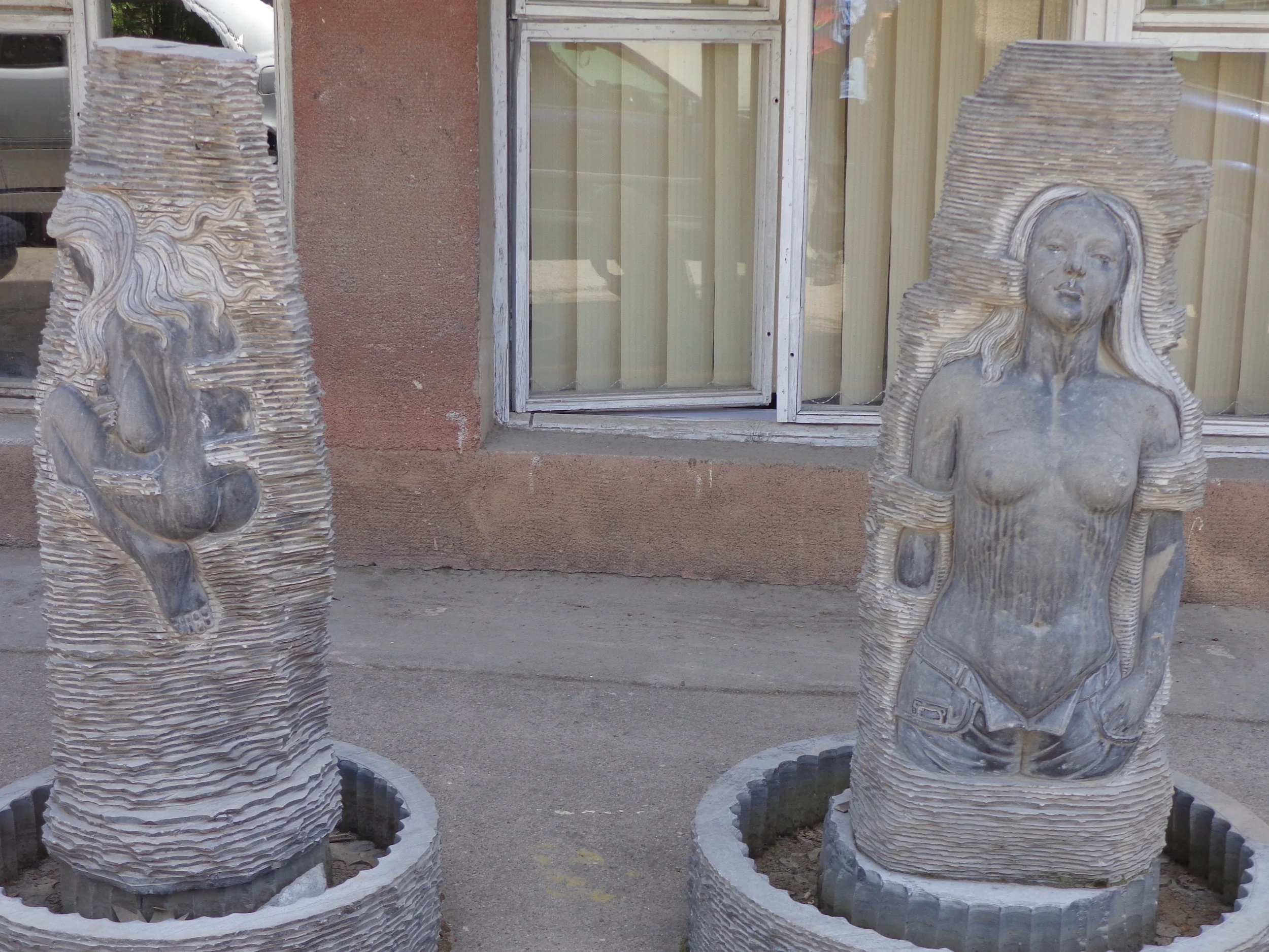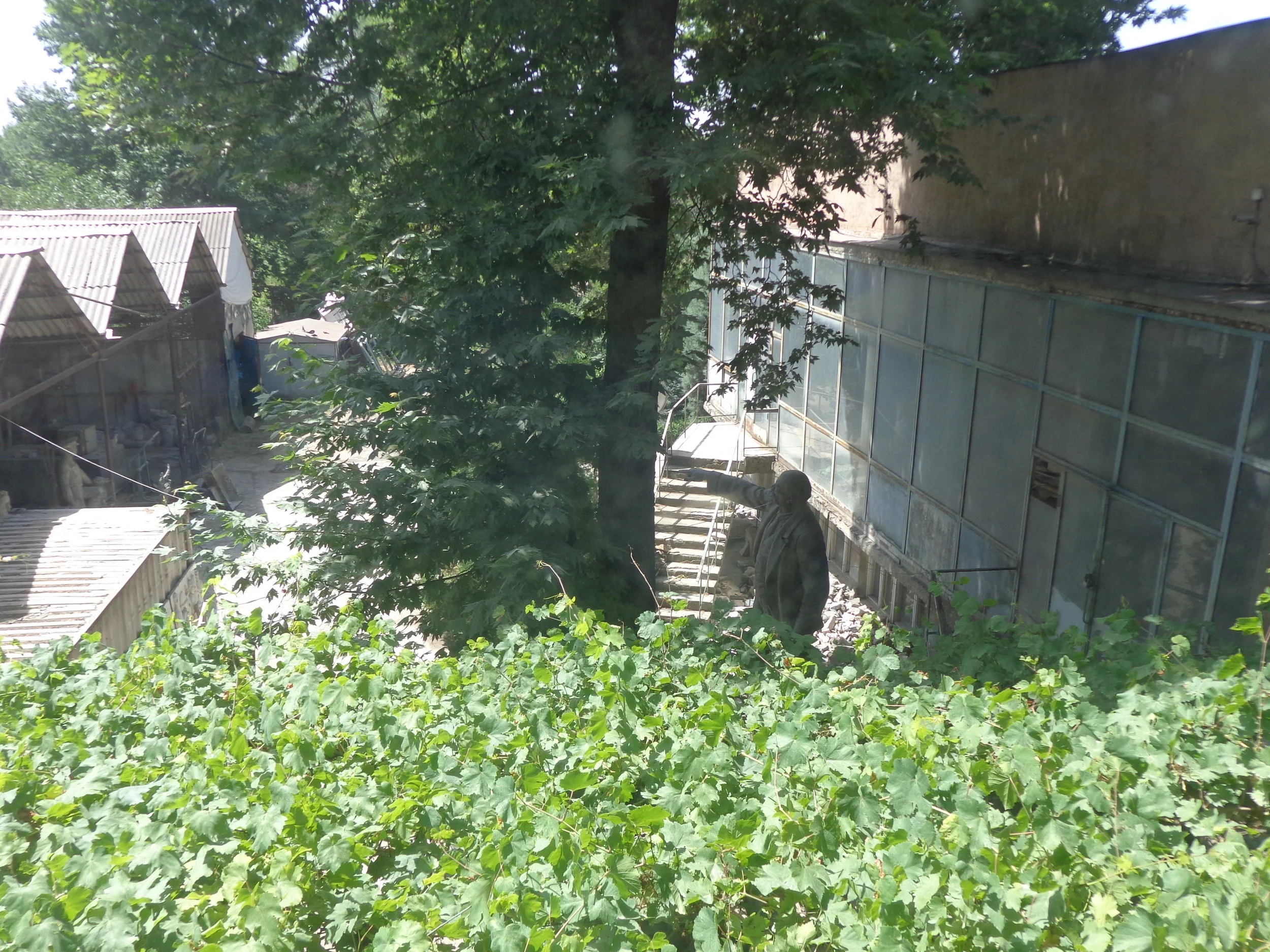 The last photo is one I took from the second story of the painter’s area, looking out the window. It shows the end of some of the sculpting sheds. We eventually got down to this area. But if you look just to the right of the tree, you will see the top of a twelve foot tall statue of Lenin. I think he’s pointing to the sculpting sheds, which I’m sure is a step down from whatever he used to point to.