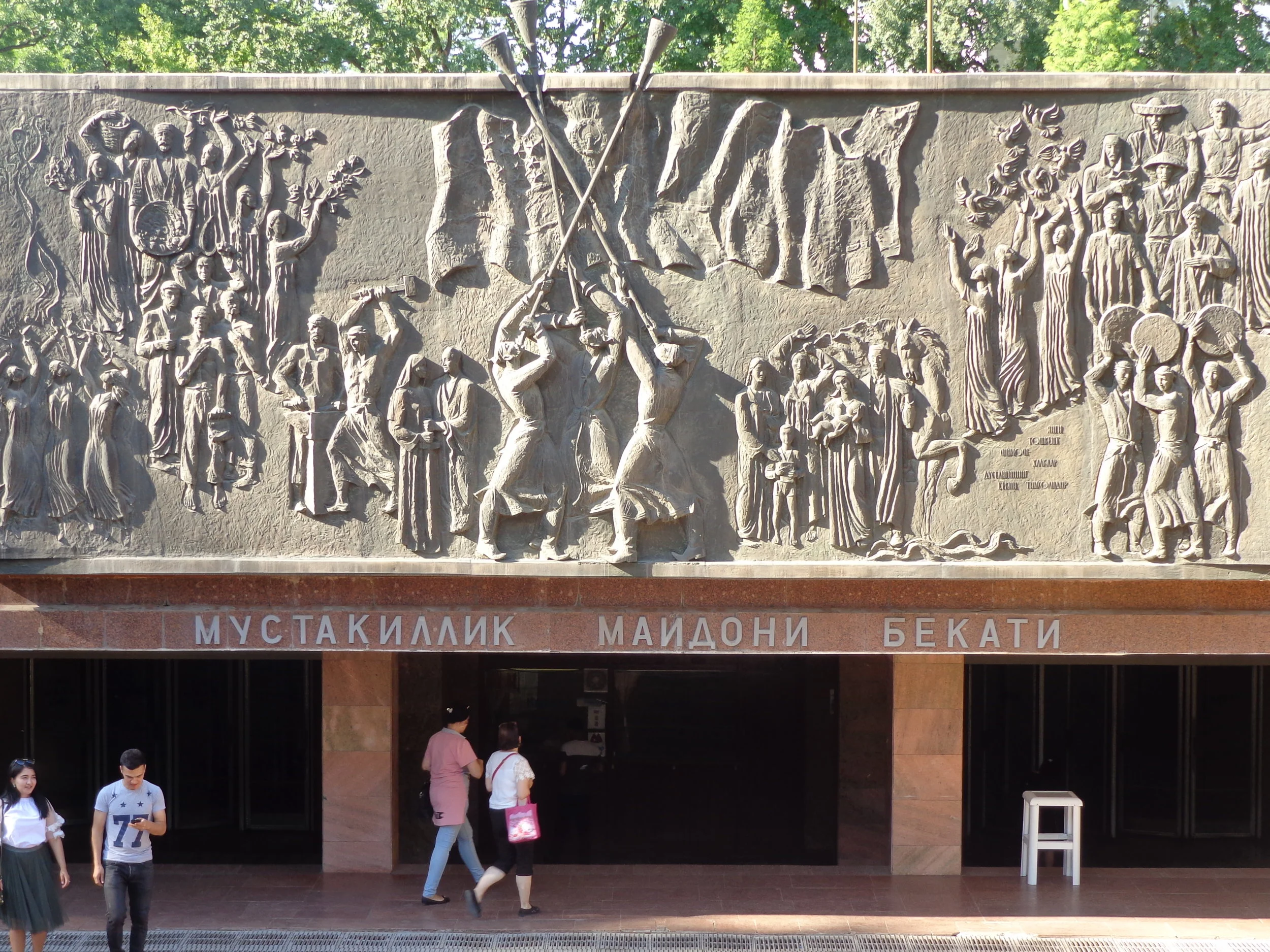Tashkent has three Metro lines. We saw several entry places into their metro system. It all looked very neat and clean and artistic. Of course, probably the most beautiful metro system I’ve ever seen was in Moscow, so there you go – the Russians. You can see a metro entrance in the second photo. We took a ride on their metro and it was quite nice.