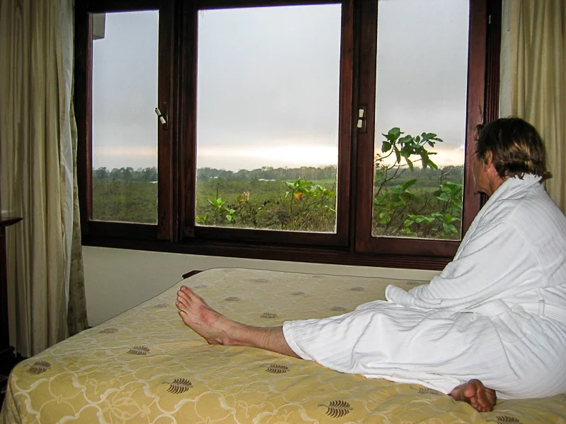 Here are some photos that I wasn’t going to post. For the most part, this was not a luxury vacation but more of an adventure vacation. I get many comments back from my trips like, “Remind me never to use your travel agent” and “That looks nice but I think I’ll go to Paris”. So while I don’t want to disillusion anyone, we didn’t rough it the entire trip.  We got booted off our boat in the Galapagos four days early. To make up for it, they put us up in the Royal Palms Hotel, which is a five-star affair. Here are a few photos. The hotel only had about fifteen bungalows which were stand-alone units and very nice.