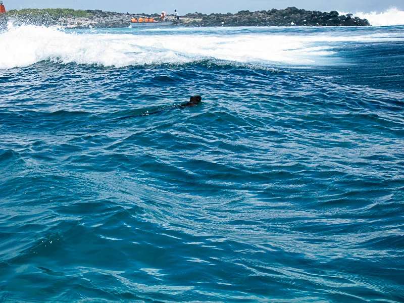 This photo is as we were leaving an island and I happened to notice a marine iguana swimming in the waves. The boat was rocking so it’s not a great photo, but we didn’t see too many iguanas swimming.