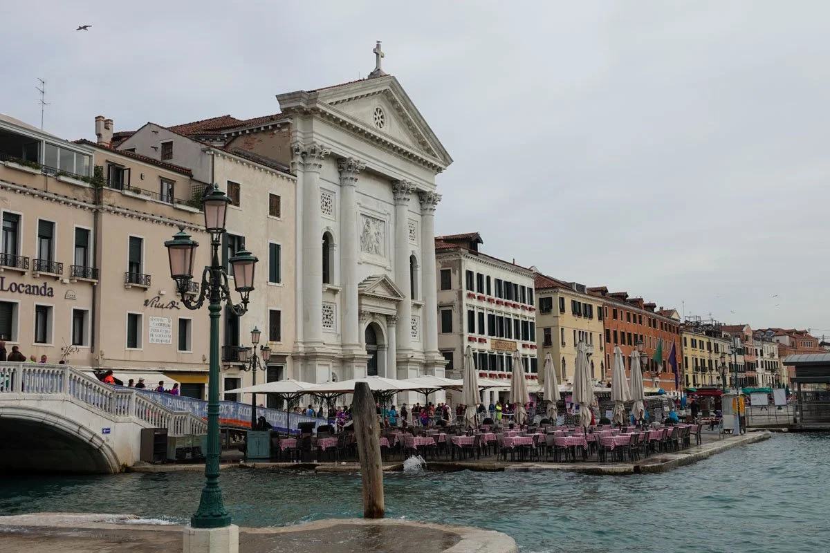 Dining al fresco, or in the fresh air, is normal in much, if not all, of Europe. It's also normal in Venice, but I have to say that I might tend to draw the line if sitting in a seat subject to being splashed. It didn't seem to concern the Venetians. (though I don't think this place was open yet)
