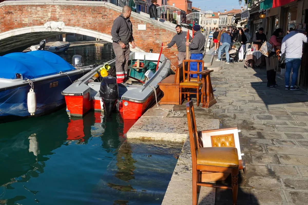 People in Venice no doubt move housing locations like anyone else in the world. These guys were moving all the household furniture from a place nearby and putting it in their boat.