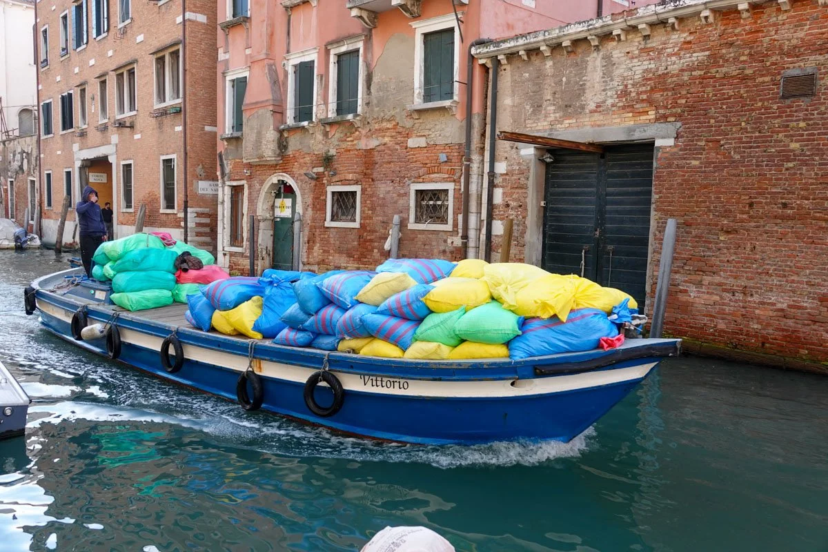 It is my nature to wonder about such mundane things work as construction, water, garbage, etc. in a place like Venice. But after five days there, I came across any number of these items, just as we were wandering about.