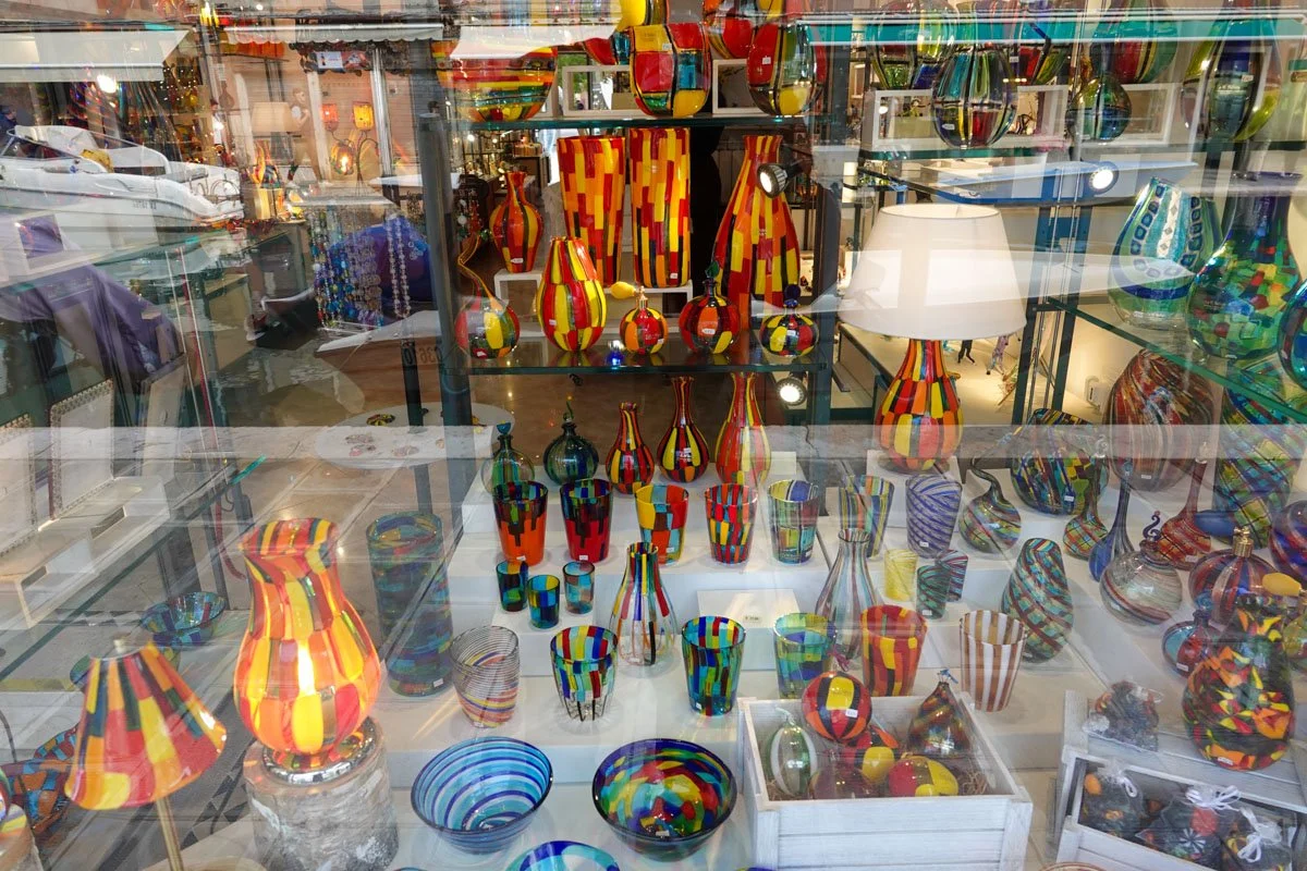 Venice has long been known for glassmakers. In 1291, Venice made all the glassmakers in Venice move to Murano. I don't know why, but they did. Murano is a glassmaker's paradise. They initially made glass beads and mirrors. Aventurine glass was invented in Murano. For a while, Murano was the main glass producer in Europe. Later, the island became known for chandeliers.