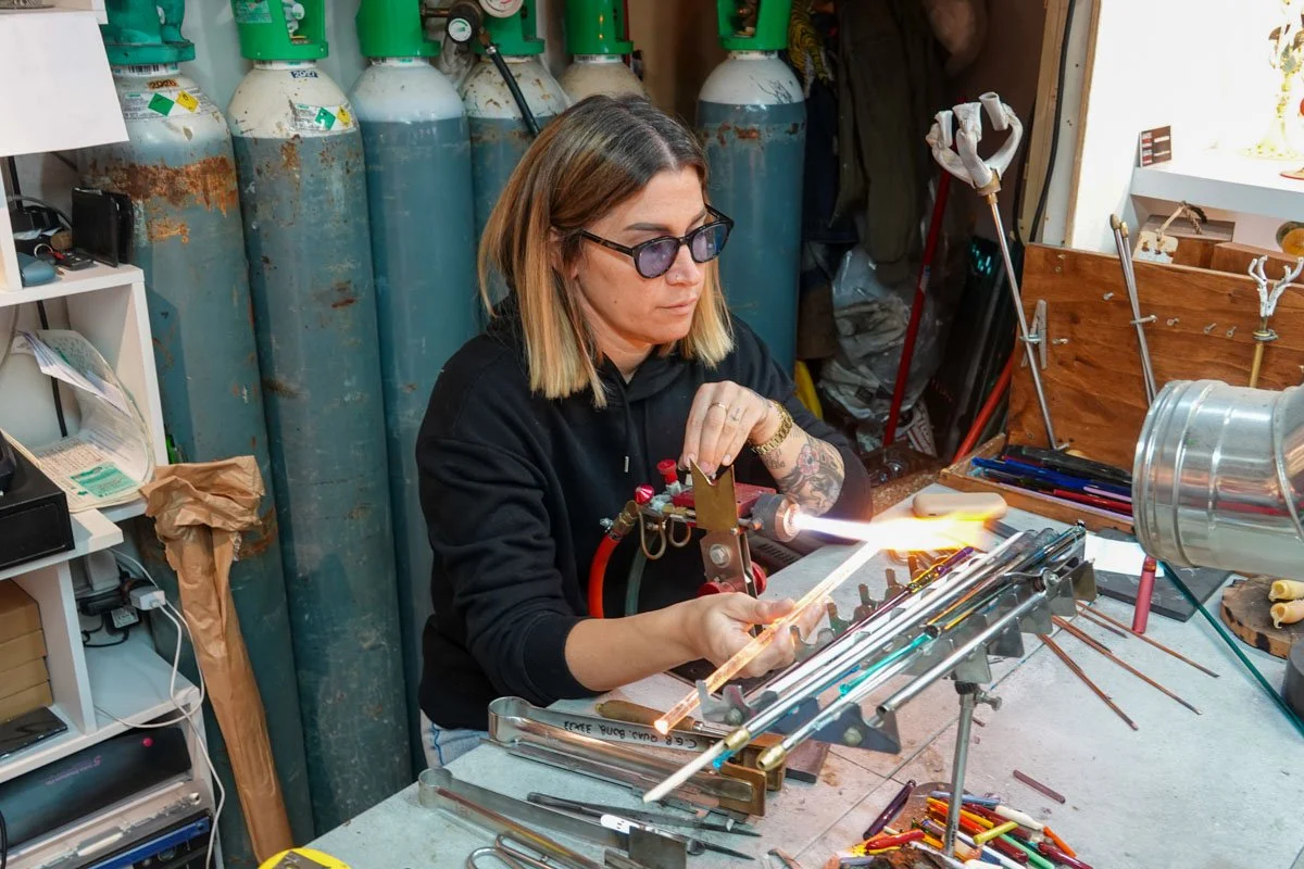 We visited a glassmaker, watched her work, and had a Q&A with her. I found her work fascinating. She said she had been doing this for ten years.