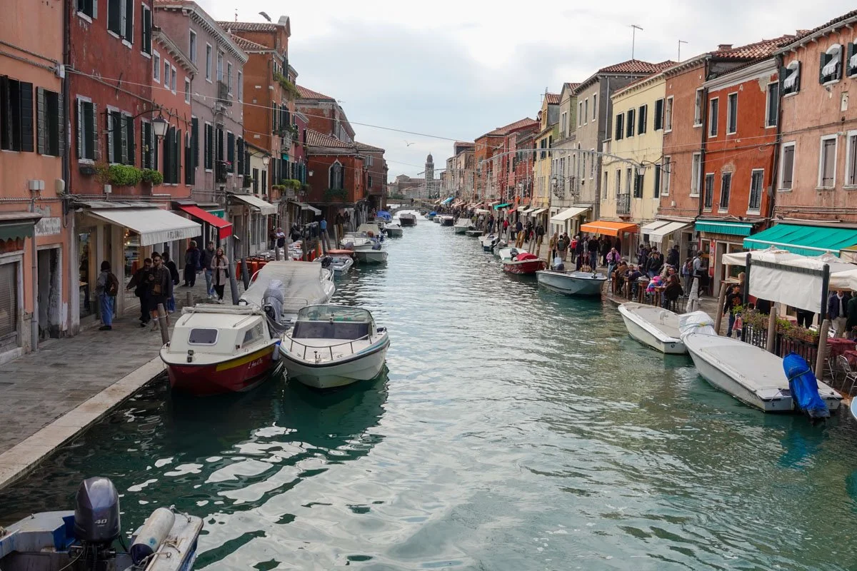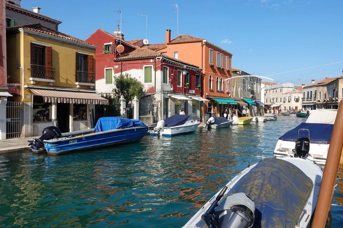 Murano is a series of islands linked by bridges in the Venetian Lagoon. It's about one mile from Venice and we stopped here on our way back from Burano. Murano was initially settled by the Romans but later by other people. The island initially prospered as a fishing port and through the production of salt. The island looks like it belongs as part of Venice, though probably more colorful.