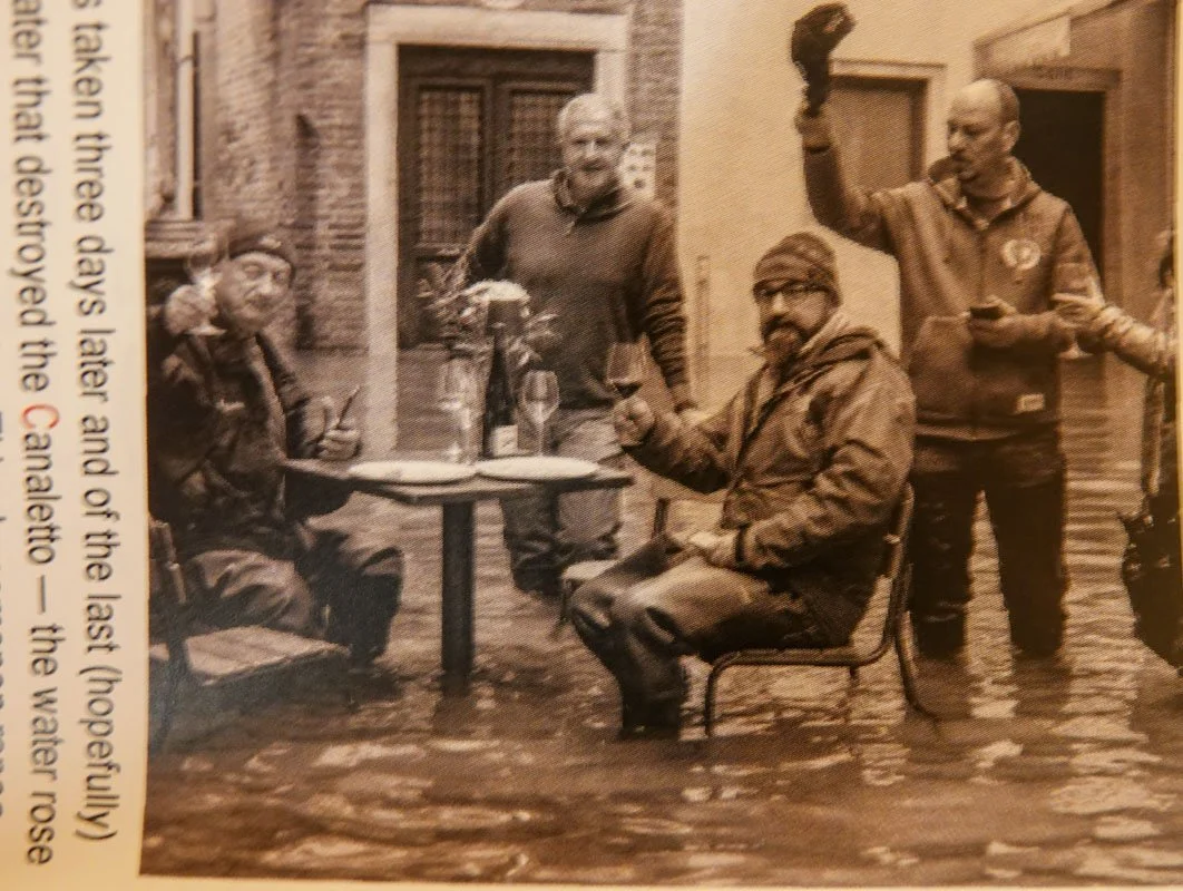 We walked to this restaurant in Venice proper for lunch after returning from San Giorgio's. It's a bit off the beaten path but very near the Rialto Bridge and St. Mark's Square. The restaurant was started in 1983 and was flooded in November 2019 as the photo on their menu shows. The menu went on to say that the water got as high as the table tops.