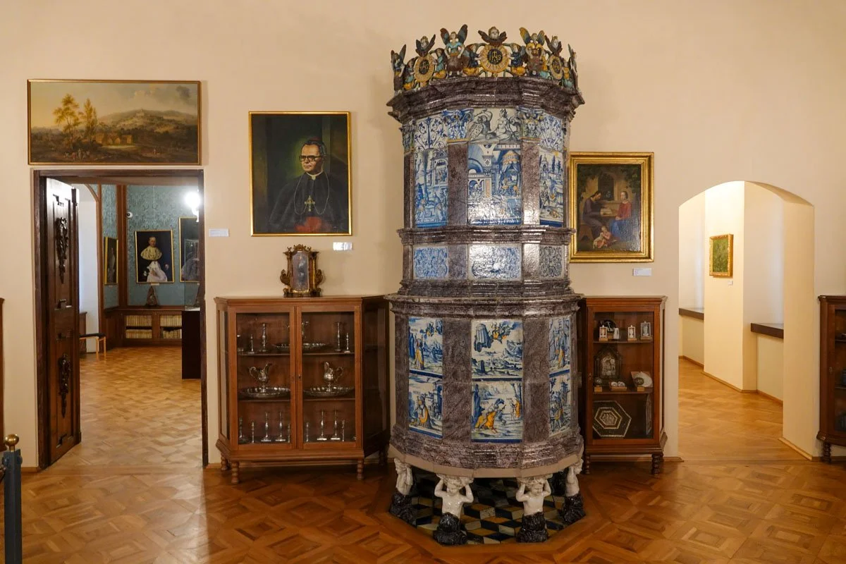Perhaps my favorite thing to look for and see were the majolica (pottery made by a tin-glaze process) stoves. Almost every room had one. They were each very different, each very decorative, and all were quite large. The one below was not one of the largest stoves. This palace must have cost a fortune to heat in the winter time but I'm sure the bishop was comfortable.