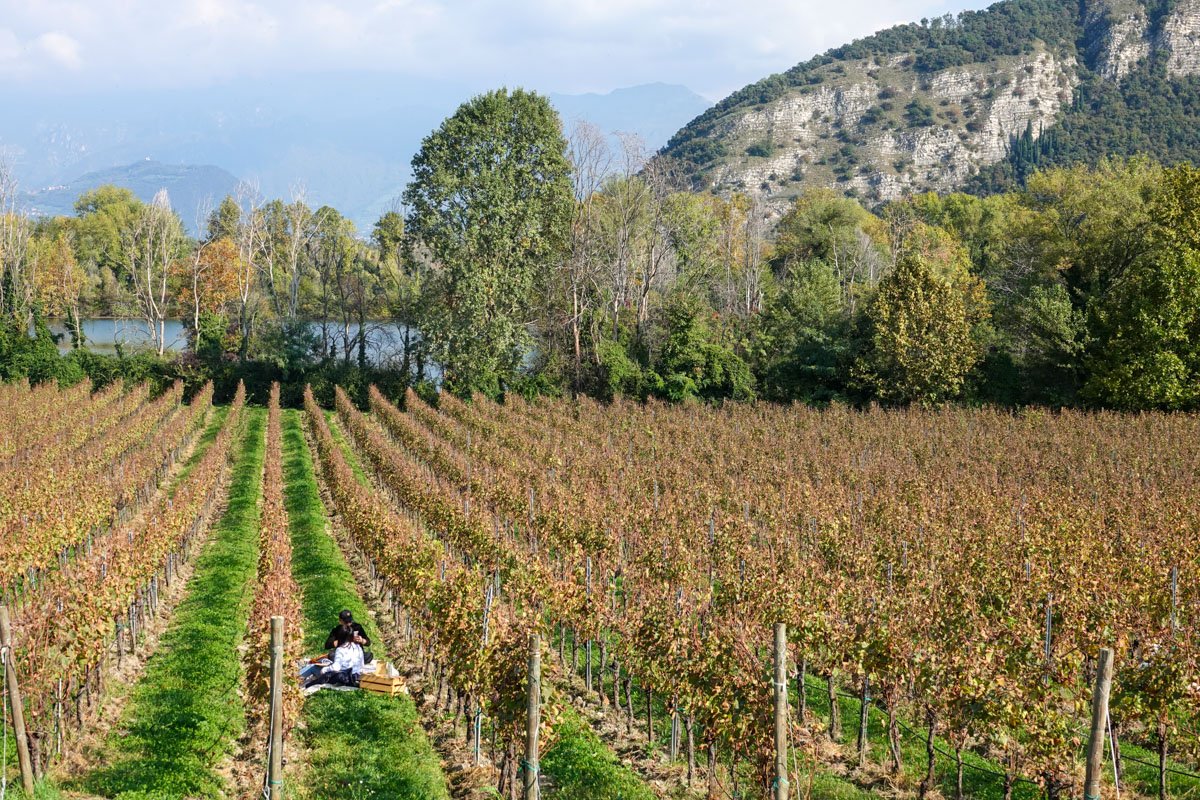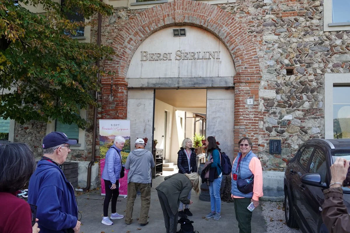 We were driving this day from Tirano to Lake Iseo. We stopped in late afternoon at the Bersi Serlini Winery in the Franciacorta wine region, known for its sparkling wines. This winery has 35 acres of mostly Chardonnay grapes with some Pinot Noir included for balance. They only make sparkling wines, but they make several different types. They said the winery was started in 1886 by the family that still owns it. Their primary tasting room is an 11th century building built by the Benedictine monks.