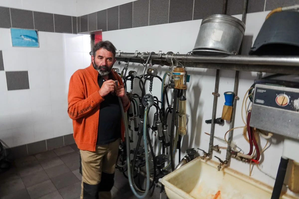 Here is the farmer with some of his milking equipment. It's actually quite high-tech in terms of how it tracks each cow's production.