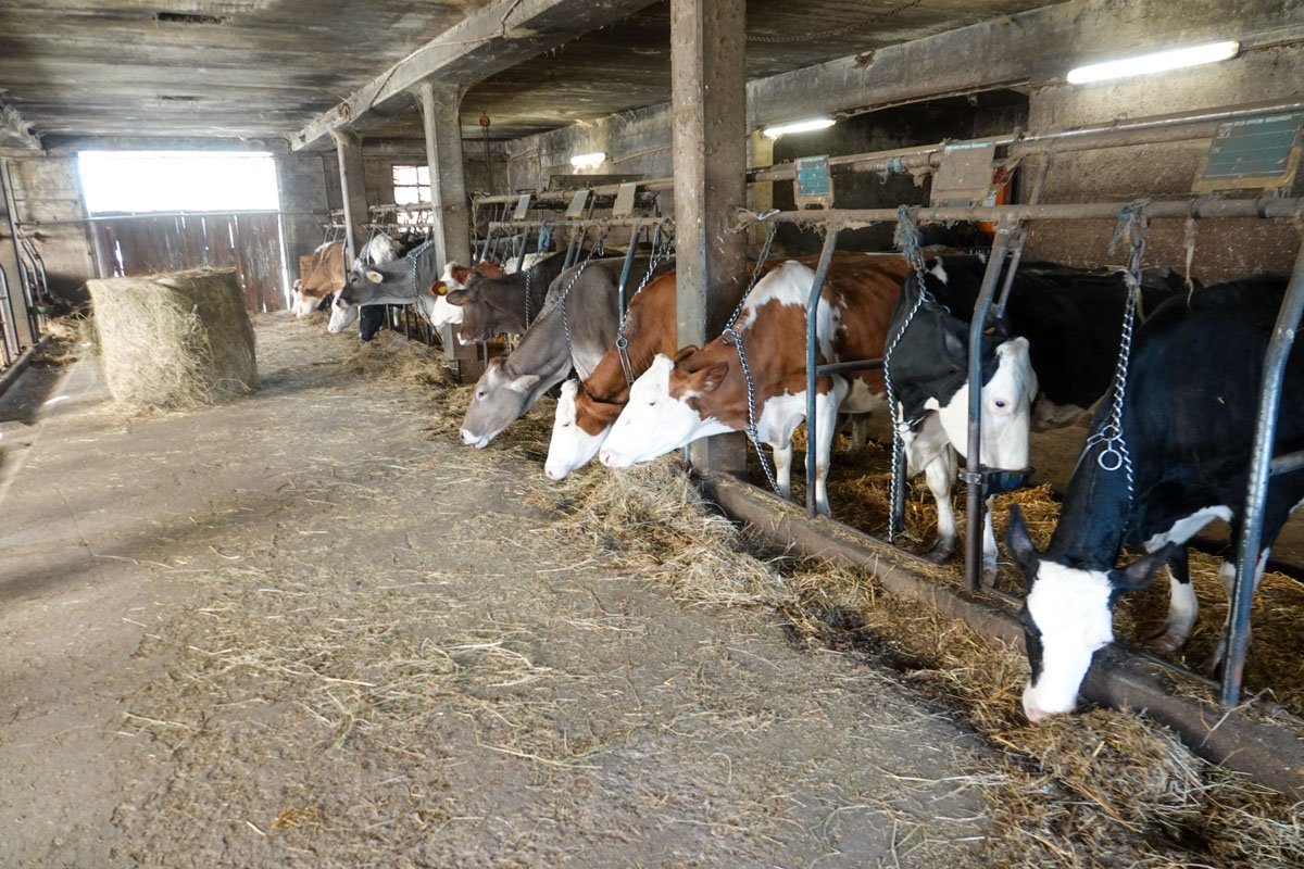 A dairy farmer was our first visit. He used to have 70 cows and produce milk. He said that proved problematic, for making money. Now he has 40 cows and produces cheese and butter. He said that this business has a much lower mortality rate for his cows than with the milk cows. He has three types of cows, each for a different product. His cows are Brown Swiss, Black and White, and Red and White (he named them for us). He also produces all the food for his cows which includes grass, hay, corn, etc. He bales hay and makes silage for the winter time.