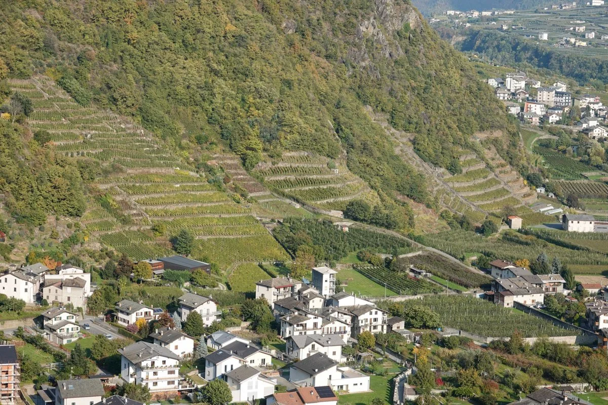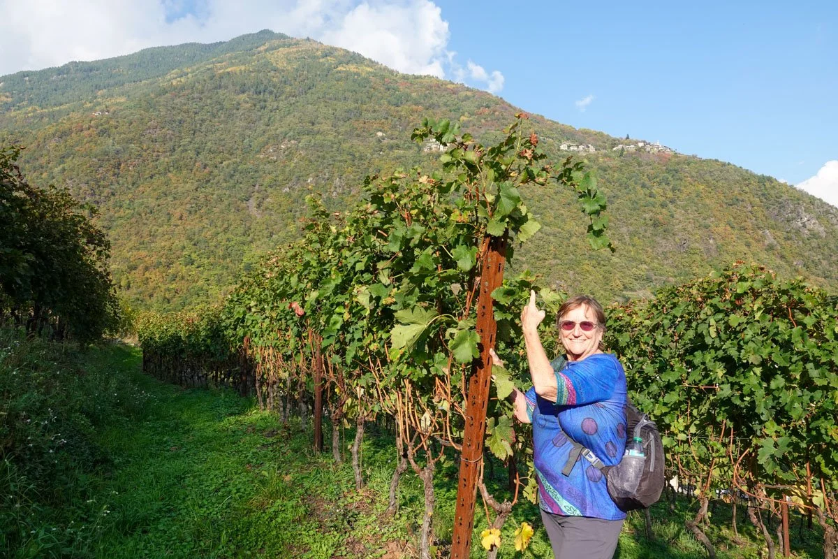 One late afternoon in Tirano, we hiked from town up the mountainside to the Santa Perpetua church. For me, I was more interested in hiking through the vineyards. This is the Valtellina wine region, and we saw lots of vineyards from the roads, but I wanted to see some up close. We started our hike from the Basilica of Tirano, and you can see the small Santa Perpetua church from there.
