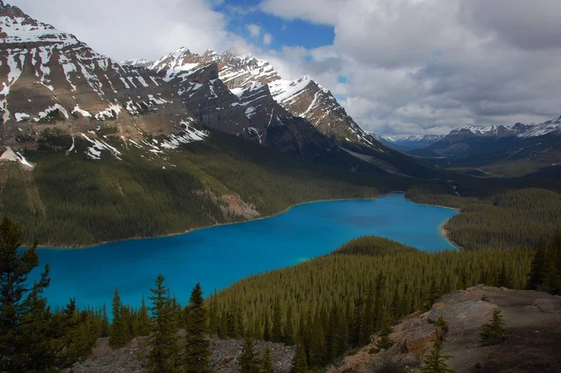 We were up and out early today to drive “The Icefields Parkway” in Banff and Jasper National Parks from Lake Louise to the town of Jasper. The weather was a constantly changing mix of clouds, sun, and rain with hot, then cold and windy, then calm and mixes of all of these. It seemed like we were driving along side of a beautiful river the whole day with lush forests and snow-capped peaks all around us. We also saw plenty of wildlife, though not in the quantities seen earlier in the trip. We spent the whole day driving north on Hwy 93.