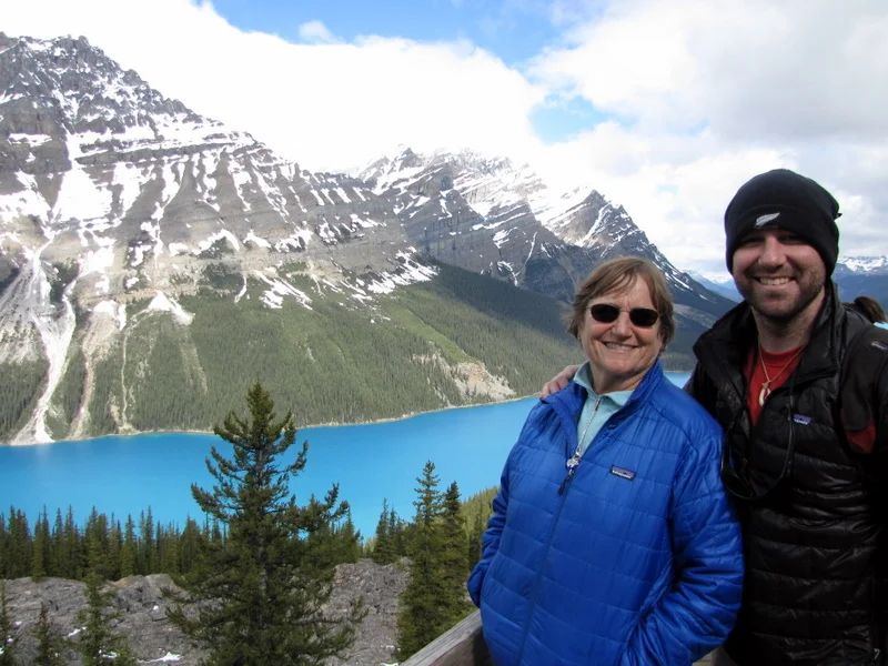 One of our earlier stops was at Bow Lake and Bow Glacier. The lake and glacier captured a lot of the great things about the Icefields Parkway. I’ve included four photos of the lake and glacier above it. The colors, textures, mountains, clouds, and reflections were all very dramatic and beautiful.