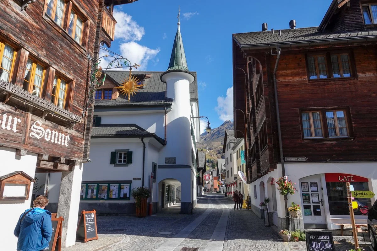 From the Furka Pass, we drove down to the town of Andermatt. It's a scenic alpine village. We wandered around town and ate some lunch. It's really beautiful country and fun to just walk through town with its cobbled streets, interesting architecture and curious stores.