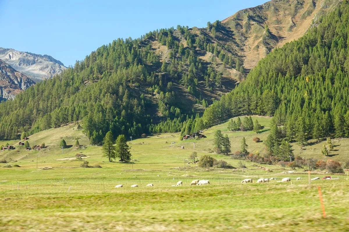 The rest of the photos in this post will all be "moving-train through the window photos." But I want to show some of what we saw on the Glacier Express train ride. It helped that the train was so smooth riding and the day so nice.